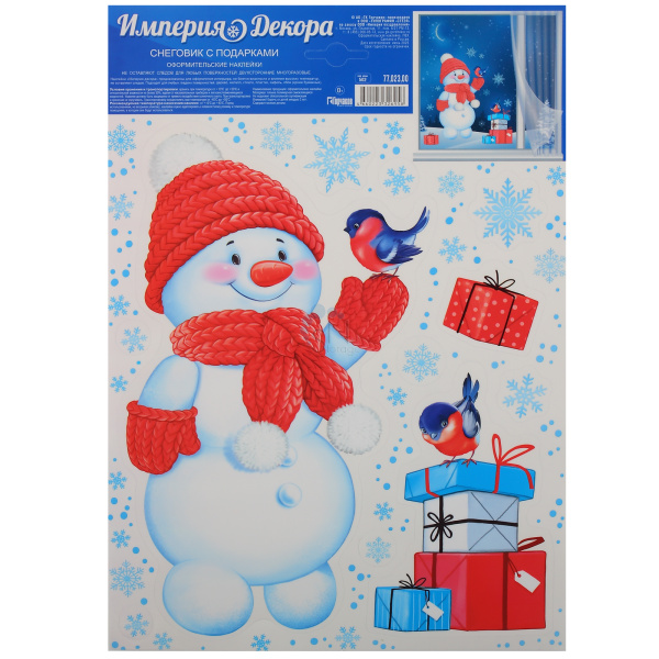 Наклейка ПВХ 23*33см Снеговик с подарками Империя поздравлений 77,023,00
