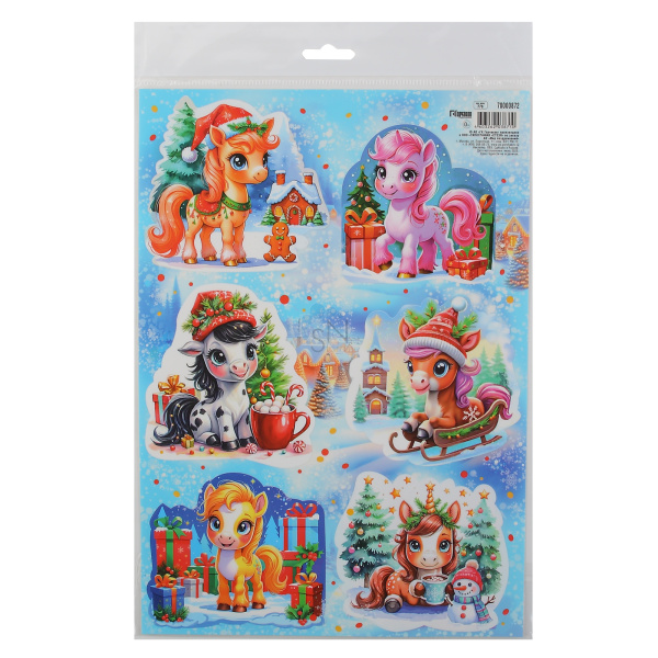Наклейка ПВХ 23*33см Веселые лошадки двусторонняя Мир поздравлений 7.0000872