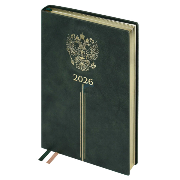 Ежедневник А5 дат 2026г тв обл 7Бц к/з 176л Escalada Тиволи тонир 2ляссе 3D дизайн тисн фольг зол срез 70252 зеленый