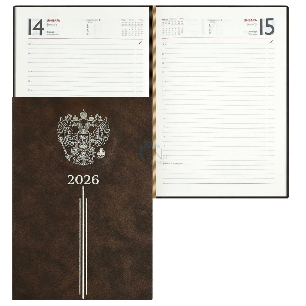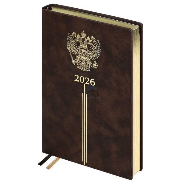 Ежедневник А5 дат 2026г тв обл 7Бц к/з 176л Escalada Тиволи тонир 2ляссе 3D дизайн тисн фольг зол срез 70250 коричневый